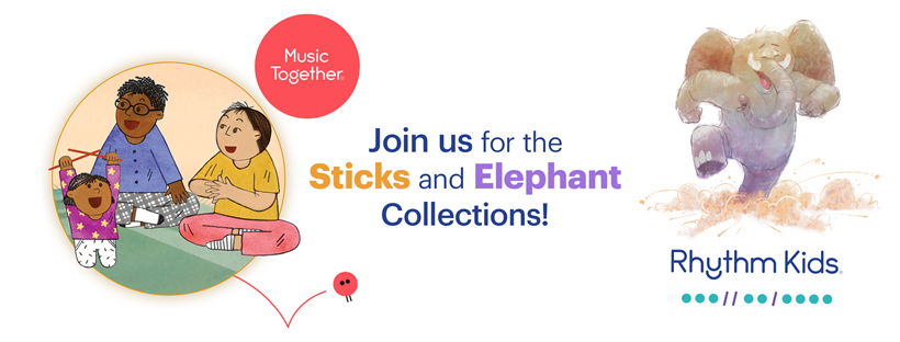 In the STICKS COLLECTION, your child will love going for a musical ride with "Ridin' in the Car" and "Trot to Grandma's House" this semester. We'll dance with "Don Alfredo baila," march and scamper with "The Tailor and the Mouse," and go "Pop!" with that good ol' classic weasel! With 23 songs and chants (plus the Hello Song and Goodbye, So Long, Farewell, of course!), you'll have lots of new songs and chants to keep the music going all winter long! In addition to your weekly classes, your tuition includes recordings and materials for you to use at home, including an illustrated songbook and access to the songs through the Music Together® app.